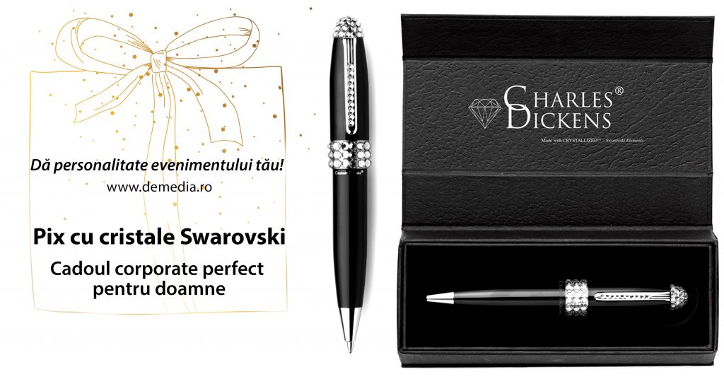 Pentru doamne, un pix Charles Dickens din alama, cu capac acoperit complet cu cristale Swarovski, oferit intr-o cutie Charles Dickens este codoul ideal pentru Craciun.
